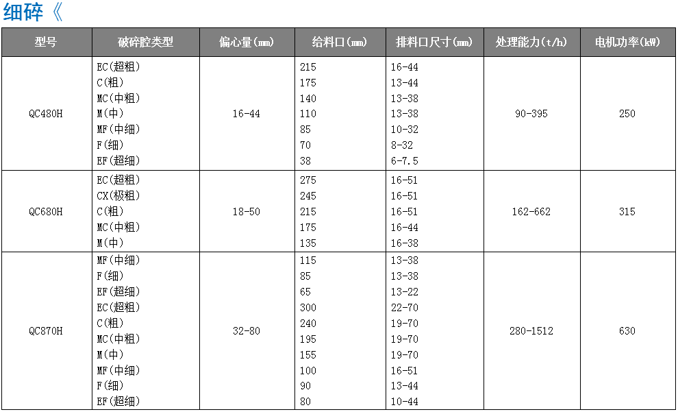 QC系列單缸圓錐破碎機(jī)具有高破碎率、高產(chǎn) 品質(zhì)量和低生產(chǎn)成本特性,能夠適用各種工況及破 碎物料,可滿足中碎、細(xì)碎及超細(xì)碎的破碎要求